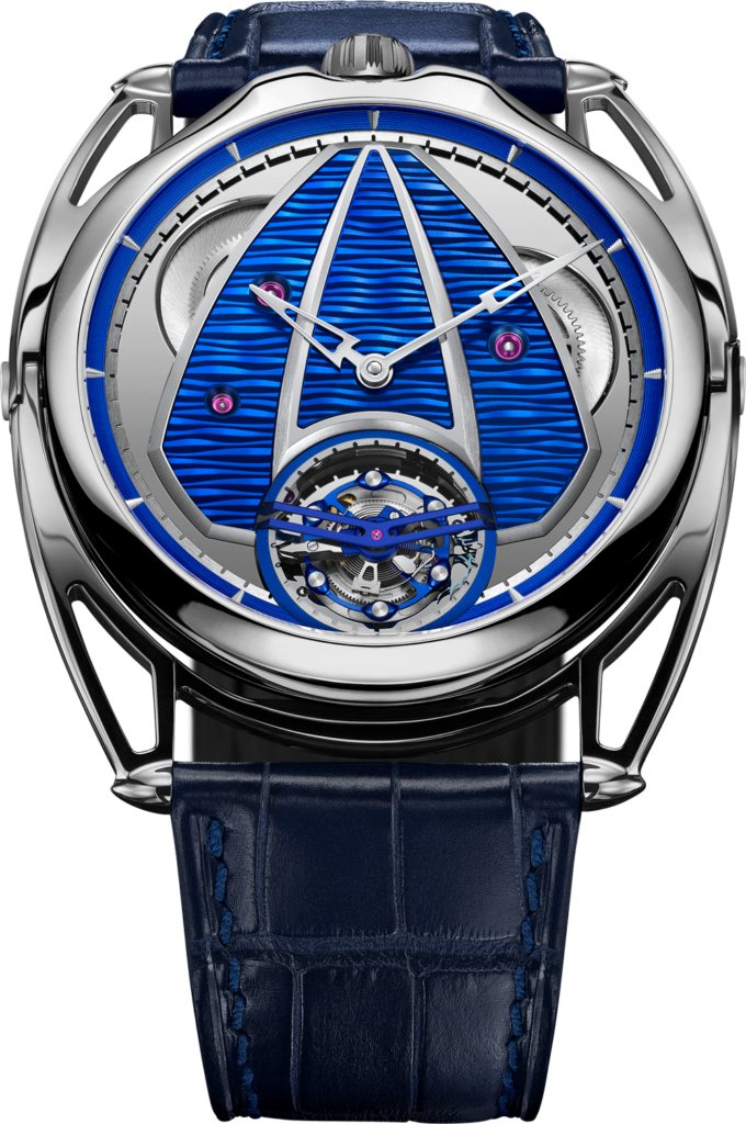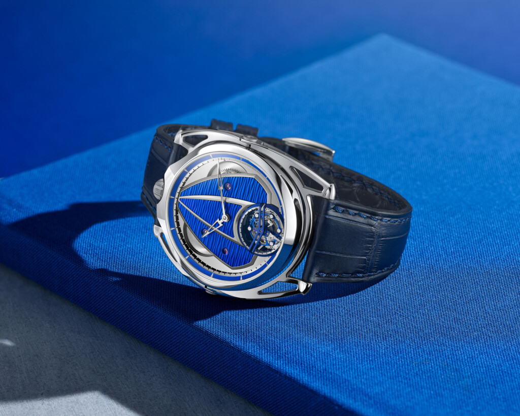 A sea of blued titanium: a high-frequency tourbillon and the comfort of a mirror-polished titanium DB28 case. Mesmerising design dedicated to contemporary precision.