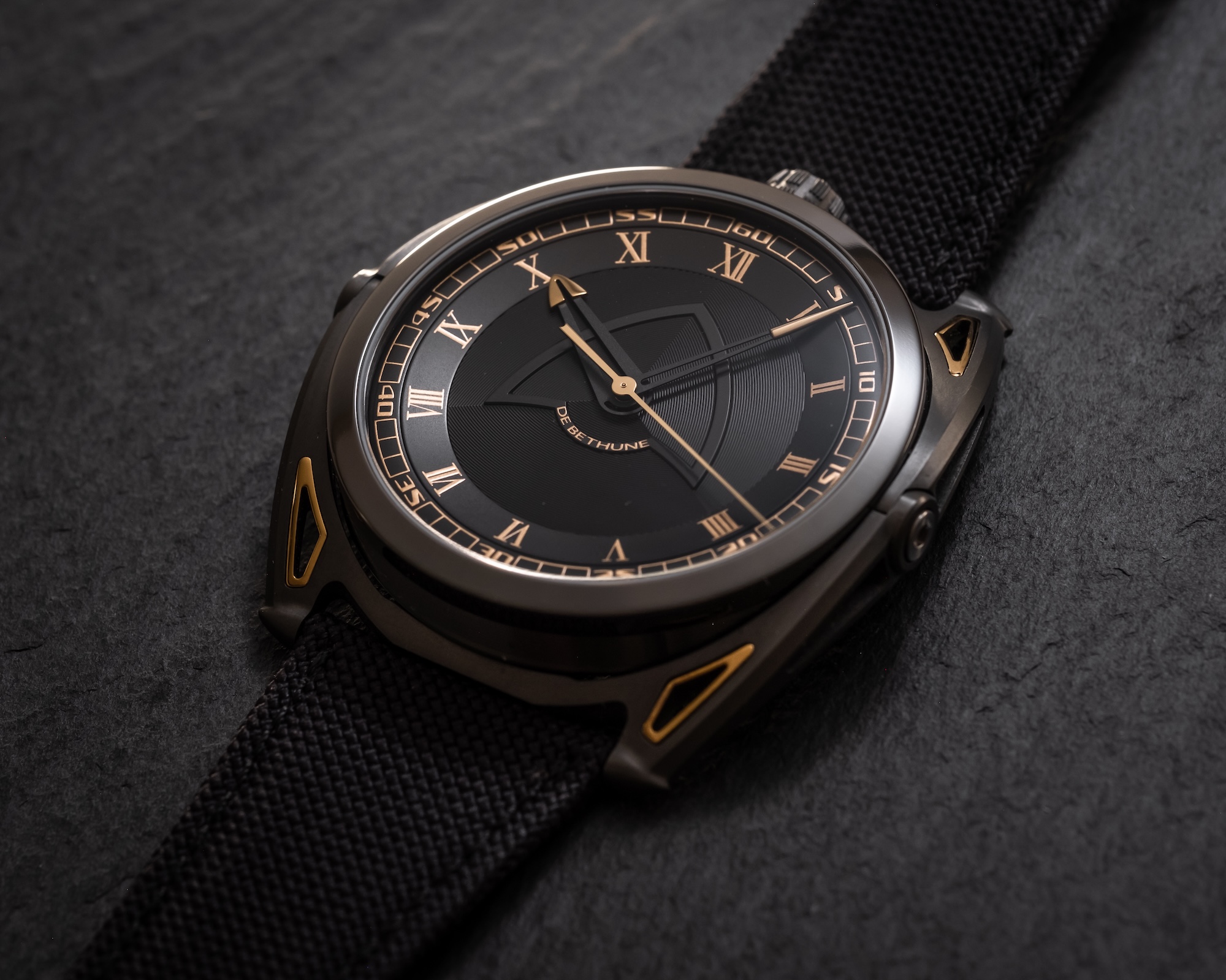 The dramatic contrast between black and gold gives the new DB27 Titan Hawk JPS a clean but subtly elegant technical feel, echoing the influence and heritage of competitive motorsports, as well as the advanced features of the calibre AUTOV2. The Latest Version of the Iconic De Bethune Titan Hawk The DB27 Titan Hawk JPS is the newest member of the Titan Hawk family and continues the line’s combination of advanced technical features, practicality and wearability, and clean, distinctive styling in a timepiece that pays homage to the golden age of competitive motorsports of the 1970s. The heart of the DB27 Titan Hawk JPS is the calibre AUTOV2. Like the engines found in the most cutting-edge racing cars, the AUTOV2 has been optimized for strength, precision, and performance and takes advantage of the most modern materials and methods to create a movement intended to be the last word in performance watchmaking. The calibre AUTOV2 offers a sixty-hour power reserve from a single mainspring barrel, and features De Bethune’s signature titanium balance, with white gold inserts. The balance, as the element which regulates the precision of the entire watch, must possess certain technical features including optimum mass at the periphery as well as low mass elsewhere – a goal which De Bethune has explored and mastered over two decades of refining the design of this most essential element. Combined with the patented De Bethune balance spring, and a balance bridge fixed at two points on the movement plate for maximum strength and stability, the AUTOV2 is a sophisticated expression of both striking aesthetics and precision engineering. The case of the De Bethune Titan Hawk JPS is in black zirconium, a high-tech, high-strength, hypoallergenic and lightweight material offering superior technical advantages in comparison to standard sports watch stainless steels. The wearability of the watch is further improved by the signature De Bethune articulated “floating lugs” with their ogival tips, which alloy the watch to conform perfectly to the owner’s wrist whether large or small. Finally, the design of the case and dial expresses De Bethune’s long-standing commitment to both technical and aesthetic excellence, with yellow titanium accents contrasting with the black zirconium case body, in an echo of the John Player Special Formula One livery used by the F1 Lotus team. The Origin of the DB27 It was in March 2018 that De Bethune’s manufacture introduced the latest in-house self-winding calibre; the AUTOV2, the beating heart of a timepiece with a modern twist. Indeed, the DB27 Titan Hawk JPS draws its inspiration from the design and technology of its predecessors while adding an innovative touch. Slim lines, a black microlight dial, sandblasted titanium minute hands with hand-polished tips, a microlight case middle, and brushed lugs and tinted open back are all key elements of the design – making for a watch that stands out not only for its sleek design but also for its entirely in-house movement. If the inspiration of the original DB27 Titan Hawk model is very quickly perceived, each detail is rethought and reworked to find the elegance and readability of an object above all designed for maximum functionality. Juxtaposing Roman numerals for the hours and Arabic numerals for the minute track, the reading of the time is given around rings located at the periphery of the dial. AUTOV2 Focusing on the essentials, the DB27 Titan Hawk JPS is equipped with the AUTOV2 calibre, hour, minute, second, which features a single barrel providing 60 hours of power reserve. The last titanium balance with white gold inserts remains visible on the back of the watch. Thanks to the technique still developed in-house, the movement is equipped with an optimized oscillating weight for the automatic winding system, made of titanium and white gold alloying it to power with maximum efficiency, and with the visual elegance so characteristic of De Bethune’s watchmaking – combining a deep celestial blue with the cool gleam of white metal, a signature De Bethune design code for many years. A Tribute to an Iconic Color Scheme in the World of Motorsports Constantly refining the structural nuances hovering between dark grey and deep black, while sparingly adding golden accents that are in fact yellow titanium – was a new opportunity to demonstrate De Bethune’s expertise in working with the oxidation of titanium and its color palette. De Bethune blue, the brand’s historic and pioneering signature, is now succeeded by a golden yellow color, for which the creative process required new assembly techniques and new texturing skills – all of which Denis Flageollet and his team have developed to bring the project to fruition and thus pay tribute to this formidable era of high-tech discoveries. Ergonomics and Comfort Finally, the DB27 Titan Hawk JPS meets De Bethune’s sporting, technical, and aesthetic aspirations. All the aesthetic codes of the Manufacture can be found in this model: the patented floating lug system with its famous cone-shaped tips that are more prominent than ever, comprising polished yellow grade 5 titanium inserts recalling the side of the case, the 12 o’clock position of its crown, a microlight decoration on the case middle, and the black microlight dial (microlight is a form of decoration unique to De Bethune, which improves on traditional guilloche to produce unique visual and optical effects). Machined in a 43 mm case in black zirconium with a microlight decoration on the middle, accompanied by a black canvas strap, the DB27 Titan Hawk JPS is also an exception expression of the De Bethune rule of wearer comfort. The result is a construction that adapts particularly well to the size of each wrist and the way it moves. The DB27 Titan Hawk JPS is available as a limited series sold exclusively through De Bethune.