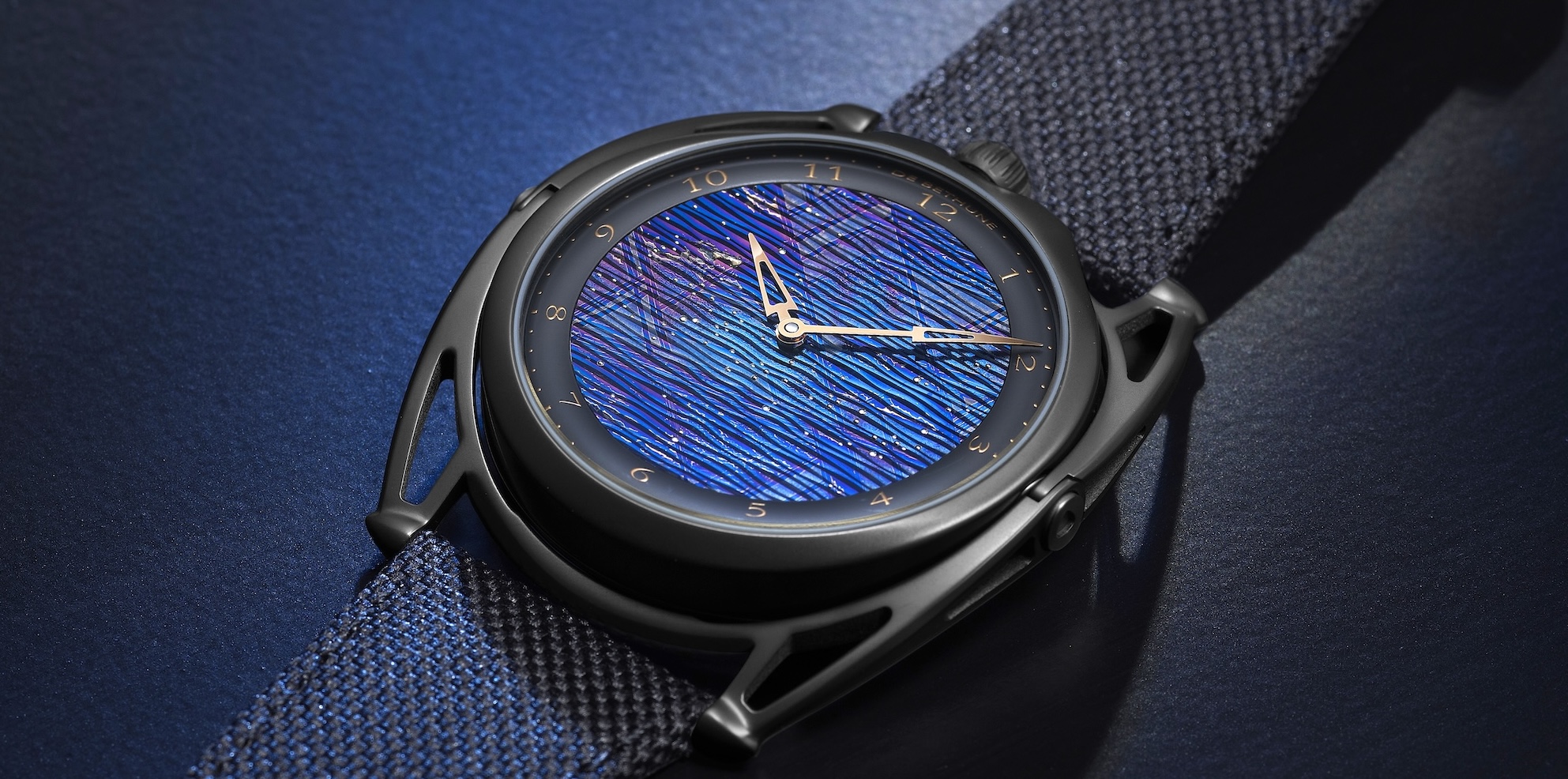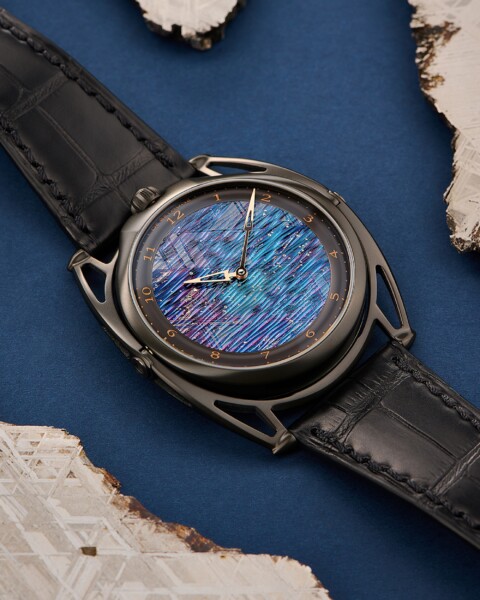 De Bethune unveils the DB28XS Aérolite, a fusion of art and science. The dial features a random guilloché pattern, harmoniously contrasted by the perfect geometric lines of the Muonionalusta meteorite. A limited annual production A moment frozen in time, capturing the essence of a galaxy’s birth! De Bethune celebrates the raw power of nature, pure and unaltered energy. Crafted from a meteorite, the DB28XS Aérolite sparks inspiration and resonates with the soul of the explorer within. According to Denis Flageollet, “No other metal is as infused with pure energy and emotion as iron meteorites, which have taken form in the furnace of stars.” The watchmaking manufacture De Bethune, renowned for its perpetual innovation and horological excellence, is proud to unveil its latest creation: the DB28XS Aérolite. This exceptional timepiece sits at the intersection of watchmaking tradition and modern science, pushing the boundaries of creativity and horological engineering. It marks a new milestone in the brand’s history, drawing inspiration from previous masterpieces such as the DB28XS Starry Seas and the DB28XP Météorite, while introducing a unique and contemporary vision. DB28XS Starry Seas: A Groundbreaking Innovation on a Smaller Scale The DB28XS Starry Seas represented far more than just a miniaturization of the iconic DB28 when it was released in May 2023. With its 39 mm diameter, this watch incorporates remarkable technological advancements while preserving the avant-garde spirit of De Bethune. Inspired by the Japanese concept of Wabi-Sabi, this timepiece celebrates beauty in imperfection and impermanence, showcasing a novel random guilloché pattern that evokes the rippled surface of a starry sea. Every element of the watch, from its minimalist design to its cutting-edge technology, embodies a deep reflection on the harmony between man, object, and environment. DB28XP Météorite: A Fragment of the Universe on Your Wrist The DB28XP Météorite, launched in 2021, paid tribute to the majesty of nature through the use of the Muonionalusta meteorite, one of the oldest known on Earth. With a dial adorned with unique geometric patterns, this watch is a true work of art forged in the vastness of space. The deep blue of the dial, achieved through thermal oxidation, is speckled with delicate grey gold flakes, recreating a starry sky of ethereal beauty. Each piece is unique, offering clients the opportunity to customize the constellation engraved on the dial, thus creating an intimate connection between time, space, and the individual. DB28XS Aérolite: A New Era of Creativity and Technical Mastery “There is no point in working unless it is to progress, and the only way to achieve that is by constantly questioning oneself. Continuously revisiting and rethinking the work, evolving it by modifying an element, a process, a technique, and sometimes bringing subtle, often imperceptible, improvements,” comments Denis Flageollet. Historically, watchmakers have protected mechanisms from external influences, but precision quickly demanded timepieces that are comfortable to wear and capable of withstanding extreme conditions. The DB28XS Aérolite, with its miniaturized DB2005 calibre, maintains impeccable chronometric quality while gaining in lightness, thereby improving its resistance to shocks and accelerations. The DB28XS Aérolite stands out by combining the distinctive elements of the DB28XS Starry Seas and DB28XP Météorite models while introducing a new dimension of contemporary watchmaking. A 39mm black zirconium case, paired with a blue meteorite dial, symbolizes the meeting of earth and sky, of ancient craftsmanship and technological innovation. This watch embodies the essence of De Bethune: an unrelenting pursuit of perfection, a capacity to transcend the boundaries of traditional watchmaking, and a desire to create exceptional objects that resonate with the deepest human emotions. With the DB28XS Aérolite, De Bethune continues to reinvent modern watchmaking, offering a timepiece that is not only a technical masterpiece but also a timeless work of art.