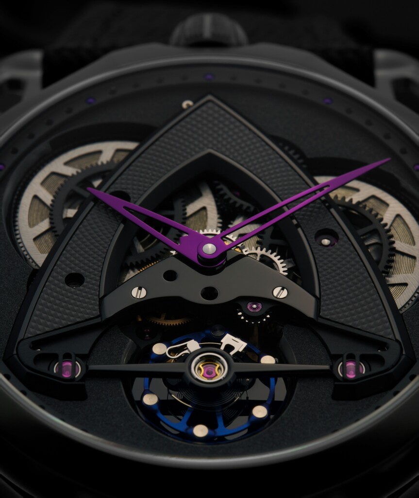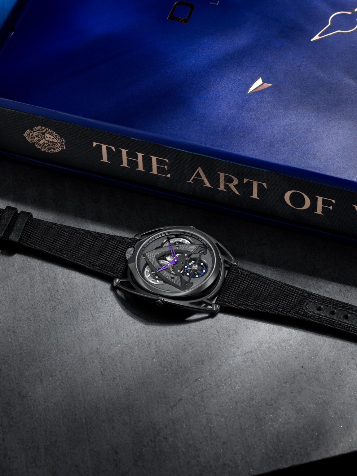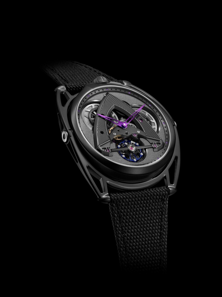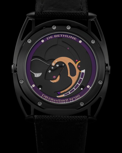 De Bethune unveils the DB28xs Dark Sand, a new interpretation of the DB28xs Steel Wheels showcasing the Manufacture’s research into materials. This compact creation clad in matt anthracite zirconium embodies a dense, more mineral and resolutely contemporary aesthetic. Featuring a crown at 12 o’clock, the DB28xs Dark Sand retains the aesthetic signatures and open architecture of the DB28xs Steel Wheels, while adopting a radically different approach. Light is no longer merely revealed but is instead absorbed, sculpted, then reflected in subtle touches, shaped by the finishes and volumes. Featuring a crown at 12 o’clock, the DB28xs Dark Sand retains the aesthetic signatures and open architecture of the DB28xs Steel Wheels, while adopting a radically different approach. Light is no longer merely revealed but is instead absorbed, sculpted, then reflected in subtle touches, shaped by the finishes and volumes. Matt anthracite zirconium: a quest for materials and longevity Pursuing its research into materials and processes, De Bethune presents zirconium – a metal featured in its collections since 2012 – as a natural and sustainable alternative due to its distinctive properties and colour. The metal’s hardness, along with its stable oxidation that remains unaltered by atmospheric conditions, are key assets ensuring the resistance and longevity of a watch case. Here, the zirconium features a black satin-brushed finish, creating an understated, yet radical completely matt effect through which the material appears to capture shadows as much as light. “Dark Sand”: open architecture, exceptional hand-finished details Offering a fascinating window onto the movement’s contemporary architecture, the dial retains the openworked spirit of the DB28xs Steel Wheels. It is distinguished by a harmonious composition of hemispherical and concave shapes, enlivened by a captivating interplay of dark-toned depths and textures. The finely structured dial base in black sandblasted titanium provides both contrast and a mineral effect recalling the density and lustre of volcanic sand. The hours and minutes track in circular satin-finished black titanium is punctuated by polished mauve titanium hour-markers echoing the hands, contributing to the overall purplish touch and ensuring excellent legibility. At the centre, the anthracite deltoid-shaped bridge – De Bethune’s iconic signature – adorned with a barleycorn guilloché pattern stands out as a raised element that appears almost suspended in mid-air. Its bevelled, sandblasted and polished edges create a multitude of material transitions, forming a palette ranging from anthracite grey to deep black. Top-flight horological technique visible from both front and back The DB2115V13 mechanical hand-wound movement beating at 28,800 vibrations per hour is designed to deliver exceptional precision timekeeping performance. Constantly updated, it incorporates several of the Manufacture’s patents and technical innovations. Optimised for temperature variations and air penetration, the titanium balance-wheel with its white gold weights ensures inertia and regulation, while the De Bethune balance-spring with its unique flat terminal curve guarantees unrivalled accuracy. A silicon escape-wheel enhances energy efficiency and contributes to the calibre’s power, protected by a triple pare-chute shock-absorbing system. On the reverse, the screw-down caseback is graced with a beautiful anthracite microlight finish, complemented by the mauve/golden tones of the linear six-day power reserve indicator, powered by a self-regulating twin barrel – a De Bethune innovation. Comfort and suppleness on the wrist The DB28xs Dark Sand remains beautifully light and ergonomic with its 39 mm case, 8 mm thickness and floating lugs – a patented system that adapts to the size and movements of the wrist – crafted from matt anthracite zirconium. Paired with a leather-lined fabric strap and a matching zirconium pin buckle, this new model fits seamlessly into the DB28 collection, limited by the resolutely human scale of De Bethune’s workshops. With the DB28xs Dark Sand, the independent Manufacture offers a more nocturnal, mineral variation on the DB28xs Steel Wheels. Its novelty is expressed first and foremost through the material: tough, durable matt zirconium dedicated to its open architecture and high-level mechanics. An interpretation highlighting De Bethune’s technical advances and the meticulous finishing work of its artisans, custodians of centuries-old expertise.
