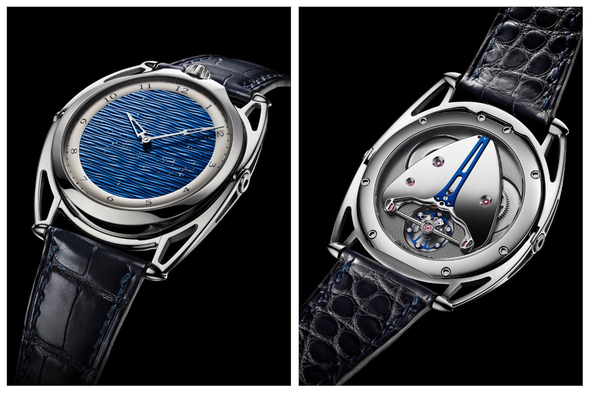 De Bethune invents random guilloché: a world’s first. Placing innovation at the heart of the process. Integrating creativity. Pushing innovation. Thinking outside the box. Not repeating but inventing; thinking ingeniously while improving precision, reliability, readability and comfort: the DB28XS Starry Seas is not just an aesthetically smaller watch. It is one that starts a new chapter for De Bethune. A model that will go down in the history of the brand, as it represents a further step in the initiation story that Denis Flageollet – Master Watchmaker and Founder of the Manufacture De Bethune – has been telling for the past 20 years. While the DB28 is an emblematic De Bethune watch, this new version is all the more remarkable for the particular meaning it enshrines. Featuring a significantly smaller diameter than previous models (39 mm), while retaining De Bethune’s unique and characteristic design, the DB28XS Starry Seas is a miniature miracle – in terms of the technology required to complete the project, but above all because of De Bethune’s virtuosity in transposing the spirit of the Enlightenment into the world of 21st century wristwatches, by reformulating exceptional fine craftsmanship and offering an unprecedented aesthetic creation. There is no question of identically reproducing the past, but rather of engaging in a quest to stir new emotions when faced with exceptional objects. The intentions of Denis Flageollet, Master Watchmaker and Founder of de Bethune are pure: he looks at tradition from an innovative standpoint and works to make the contemporary mechanical watch a wristworn cultural embodiment of time measurement. For a beautiful object to be born somewhere, mastery must have reached a certain degree of maturity While the DB28XS Starry Seas was born of an extraordinary acrobatic feat that involved bringing the majestic sense of grandeur conveyed by the great Age of Enlightenment clocks with their scientific instruments to the wrist, its fascinating micro-mechanics along with refined aesthetics of a small watch also offer a glimpse into the deepest recesses of the creative mind behind it. Beneath the deceptively simple appearance of mere miniaturisation, the singular nature of this watch and its design extends far beyond its smaller size and its mode of operation. “It is the culture and understanding of techniques and objects that enable the birth of such a project. For the creation of the DB28XS Starry Seas, the creative process that impelled me evokes the Japanese spirit of Wabi-Sabi, a Japanese concept that is virtually an art form and aims to bring individuals, objects and the environment into harmony.” An intuitive appearance of pure, harmonious beauty A veritable life philosophy in Japan, Wabi-Sabi blends two aesthetic and spiritual principles historically very present in the national culture. Referring to the fullness experienced when contemplating nature, the expression wabi means solitude and simplicity, with a touch of melancholy. Sabi, which is more concerned with the traces of past time, refers to the sensation felt when perceiving the work of time or of man on something. Inspired by the Wabi-Sabi concept, Denis Flageollet nurtures an appreciation for a quiet life away from urban hustle and bustle along with a sense of tranquillity, contemplation of something that becomes beautiful as it ages. “While design is constantly experimenting, it appears that, despite the development of industrial technology, this subtle link between humankind and Nature traditionally expressed in art, literature and craftsmanship remains alive and well.” Wabi-Sabi is comparable to the Greek ideals of beauty and perfection propagated in Western civilisation. In the Japanese archipelago, this principle lying at the heart of many artistic fields, such as design and garden art, also evokes simplicity and frugality – which are making a strong comeback after the consumerist boom and the economic bubble. Witness the success of books on degrowth. The very fragile beauty of the world All in all, Denis Flageollet clearly knows how to stand still for a while… as a means of going further. The absolutism of his work, the quest for perfection in imperfection have guided him over the last 20 years – without him even realising it – from a culture turned towards science and the rigorous aesthetics of the Age of Enlightenment to a philosophy dedicated to discovering the very fragile beauty of the world. Calm and serenity, the search for purity, tranquillity, an ode to traditional art while embracing new technologies, the DB28XS Starry Seas is the aesthetic conjugation of the beauty of simple and modest things. Three principles of the Wabi-Sabi concept emanate naturally from the DB28XS Starry Seas: With its random guilloché pattern (which is a world’s first) creating a dial featuring a blued titanium wave reflecting a starry sky, the DB28XS Starry Seas offers us one of the three principles of Wabi-Sabi: the beauty of imperfect things that are impermanent and incomplete. Through its small size and the sobriety of its silver-toned chapter-ring and movement, the second principle of Wabi-Sabi pervading it is the beauty of modest and simple things. Or at least apparently simple, for in the ultra-technical world of miniaturisation, this watch is a technical feat notably involving the extreme miniaturisation of the DB28’s patented ‘floating lugs’ system. Finally, the result is a different, singular watch embodying the third definition of Wabi-Sabi: the beauty of atypical things. Between art and science For the geniuses of the Age of Enlightenment, their aim was to create scientific instruments whose beauty emanated from their function, their mechanical sobriety and their simplicity. Powerful figures than transformed them into veritable objets d’art, calling on the best artisans of their time, including cabinetmakers, bronze-makers and enamellists such as Boulle, Caffier