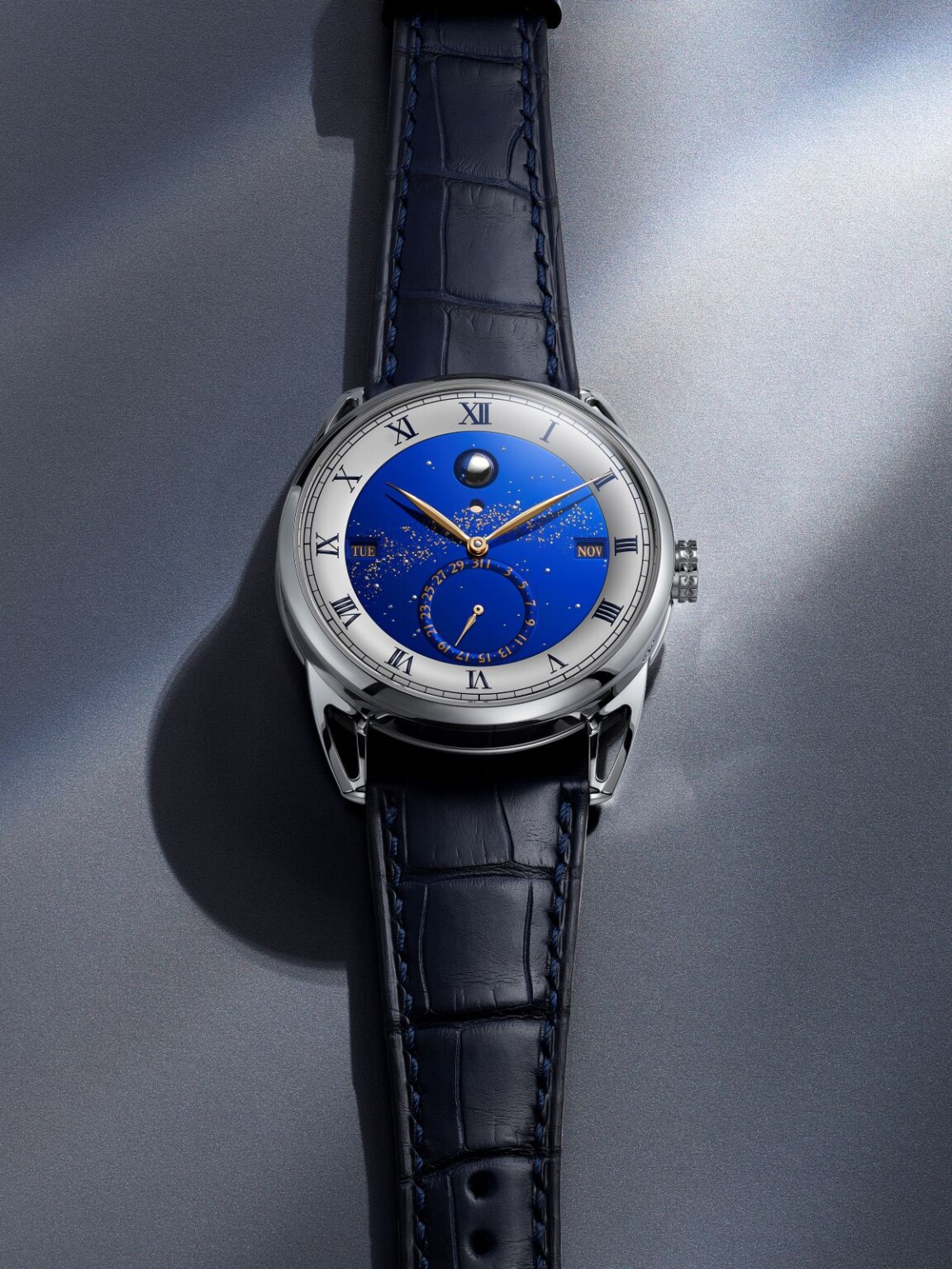 An edition limited by the human scale of our workshopsIndependent watchmaker De Bethune continues to revamp its 40 mm DB25 collection presenting a new perpetual calendar featuring a starry sky and the Milky Way at Dubai Watch Week.De Bethune offers a 40 mm version of its DB25 Perpetual Calendar, designed for slender wrists without compromising on the brand’s aesthetic codes and technical innovations. This resizing required a complete overhaul of the model’s structure designed to preserve the legibility, comfort and performance of a Manufacture perpetual calendar.Design and comfortThe signature DB25 case retains its slim lines and slanted, hollowed-out lugs, ensuring a comfortable fit on the wrist. Made from grade 5 titanium, it combines a smaller diameter with a very light feel procuring exceptional comfort.Reading the perpetual calendarThe perpetual calendar is displayed against a backdrop of a starry sky and the Milky Way. The display is based on a multi-level architecture consisting of ring-shaped appliques circling the subdials and a silver-toned minutes track. The date is positioned at 6 o’clock, while the day and month apertures are located at 9 o’clock and 3 o’clock respectively. The time is indicated with both accuracy and elegance by manually-finished, mirror-polished curved yellow gold hands.At 12 o’clock, a palladium/blued steel sphere displays the moon phases as observed in the sky – an innovation patented by De Bethune in 2004 – while a gold disc below indicates the leap-year cycle.Craftsmanship: De Bethune’s starry sky and Milky WayFor several years now, the starry sky and Milky Way have been an integral part of the Maison’s history. Defined according to a specific geographical location and date, this pattern enables subtle personalisation of the flat-polished blued titanium dial. After delicate polishing and bluing operations using a thermal oxidation process exclusive to the Manufacture, our artisans set each white gold pin into micro-perforations of varying sizes, bringing to life a poetic depiction of the starry sky. After laser-beam micro-milling, the Milky Way is gradually revealed through the handcrafted application of 24-carat gold leaf.A refined, modern calibre delivering optimal performanceEntirely developed in the workshops at L’Auberson, the DB2005V3 hand-wound calibre benefits – like all in-house movements – from all the achievements of De Bethune’s technology and research since its founding. It notably features a perpetual calendar; a spherical moon indicating the phases of the moon with a degree of precision corresponding to a one-day deviation in 122 years; a self-regulating double barrel; a titanium/white gold balance wheel; a “De Bethune” balance-spring with flat terminal curve; a silicon escape-wheel and a triple pare-chute shock-absorbing system. A sapphire caseback enables the viewer to appreciate the great aesthetic care devoted to its refined mechanics. Innovations and patented solutions are continuously updated by the Technical Office to optimise reliability and performance.Expertise and workshop exclusivity:More than 330 components are designed, crafted and decorated by hand, then assembled by a Grand Complication watchmaker in the Haute Horlogerie workshop.“Created, crafted and tested for reliability within our Manufacture, our perpetual calendar stems from artisanal work performed a few expert hands and many hours spent at the workbench. It is this high standard that makes each watch an exceptional timepiece, of which I am particularly proud.” Denis FlageolletGiven the delicacy and complexity of the work involved, the DB25 Perpetual Sky is available in a limited annual edition, produced at the pace of the workshops in L’Auberson. To ensure maximum comfort on the wrist, the timepiece is fitted with an alligator strap and titanium buckle.
