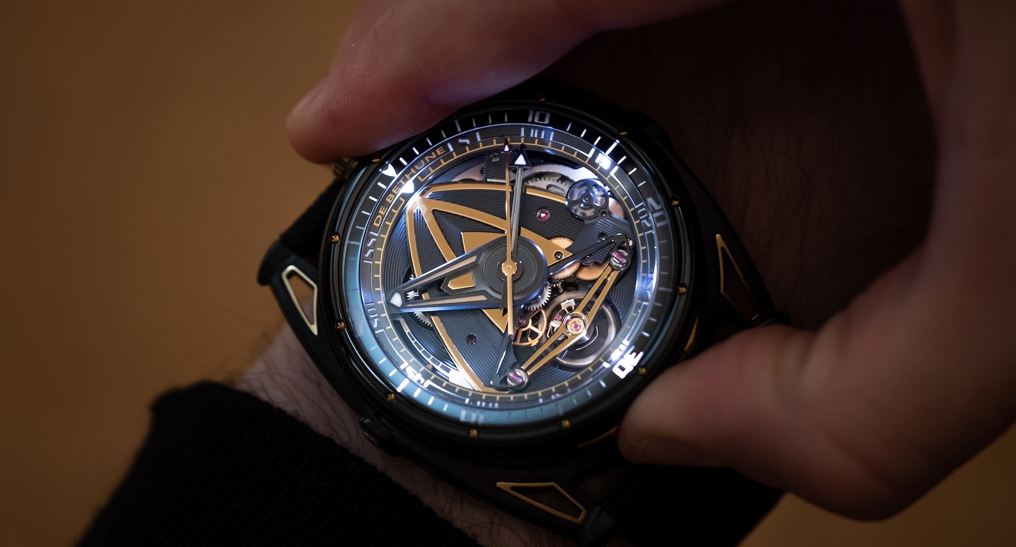 A nod to the daring age of Formula 1 in the 1970s, but also, and above all, to that key period of mechanical and aerodynamic research… De Bethune captures this spirit with the DB28GS ‘JPS’. JPS. John Player Special. Three letters evoking the legendary association of black and gold. More than a brand, a whole universe, an iconic colour code; that of Team Lotus with its totally revolutionary, unbeatable cars, the most successful of their time, often cited as the most beautiful Formula 1 cars ever built! JPS is like a mechanical dream. A succession of victories. Seven Constructors’ World Championship titles, six Drivers’ World Championship titles shared by legendary drivers such as Jim Clark, Graham Hill, Jochen Rindt, Emerson Fittipaldi, Mario Andretti… What an era! Those of us who were boys and girls in the early 1970s remember seeing the black and gold ‘rockets’ through their teenage eyes; the drivers and their black and gold suits; the black and gold helmets; the engineers whose work we glimpsed for the first time thanks to the installation of cameras in the pits…. Lotus JPS cars were also the first single-seaters to take full advantage of the major technological advances of the time, as well as research aerodynamics, and the first computer-assisted developments… F1 helped shape the collective imagination. Fearsome and severe black paired with glorious gleaming gold made JPS a 1970s benchmark from which De Bethune drew inspiration for a new version of its DB28GS ‘JPS’ sports watch. A sporty black and gold watch; a nod to the bold JPS’ spirit of the era What a pleasure for Denis Flageollet and his team to go back to that time and indulge in “tuning” his first sports watch – the DB28GS – so as to offer a black and gold version in steel, titanium and zirconium. Constantly refining the structural nuances hovering between polished and matt, dark grey and deep black, while sparingly adding golden accents that are in fact yellow titanium – a new opportunity to demonstrate De Bethune’s expertise in working with the oxidation of titanium and its colour palette. De Bethune blue, the brand’s historic and pioneering signature, is now succeeded by a golden yellow colour, for which the creative process required new assembly techniques and new texturing skills – all of which Denis Flageollet and his team have developed to bring the project to fruition and thus pay tribute to this formidable era of high-tech discoveries. Mechanical communion 1978. The Lotus 78 JPS Mark Ill revolutionised the aerodynamics of competitive motoring. Its all-new upturned aeroplane wing profile enabled it to leverage the suction effect. The car was truly ‘glued’ to the track, spectacular, innovative, defying convention and committed to uncharted optimisation territory. Its unique handling enabled Mario Andretti to become a legend in his own right, and the Lotus team with him. Just as the engineers of the F1 teams were looking to improve the aerodynamics of their single-seaters (and to increase the suction effect of the cars on the track), Denis Flageollet and his team also worked on improving the performance of the movement’s regulating organs. This notably involved enhancing the aerodynamics of the balance by pursuing the exact opposite objective of motor-racing in seeking to eliminate the suction effect that pushes it towards the mainplate. To clarify matters, it is worth recalling that air is also a fluid, albeit an invisible one. A Swiss mathematician, Daniel Bernoulli, developed a principle stating that within the flow of a fluid, an acceleration occurs simultaneously with a decrease in pressure. This is what enables an aeroplane to fly. Its wings have two different profiles: on the curved side, the air goes faster (because it has to cover a greater distance); while on the other side, the air flows slower, with the difference in pressure creating the lift that alloys the plane to fly. This is exactly what Denis Flageollet is trying to do with his balances: they pass so close to the mainplate that they tend to experience a suction effect. In the case of a race car, its upturned wing generates negative lift that pushes the car towards the track, increasing the grip of its tyres and enabling it to go faster around corners. De Bethune’s balances have exactly the opposite effect, giving them an “aeroplane wing” effect and thus providing lift and lightness that almost alloys them to “fly”. While the suction effect is even more powerful with the acceleration of the car, the same occurs during the acceleration phase of the balance. Just as the F1 car takes advantage of the upturned wing to press the car to the ground when it accelerates, the benefit is just as effective in reverse for the balance, which uses the aeroplane wing process to avoid it being ‘pushed” towards the mainplate. Mastering DLC treatment Similarly, whereas F1 engineers were among the first to work on DLC (Diamond-Like Carbon) anti-friction coatings to reduce the friction of metal parts in their engines and thus improve performance, Denis Flageollet and his team have worked on the fantastic properties of DLC coating on hardened steel to improve the durability of watches black floating lugs and bezels. Often used rather inappropriately in watchmaking by applying it to materials that are too soft – such as 316L stainless steel or titanium which are deformed beneath the DLC layer and render it brittle – De Bethune uses DLC treatment only on ultra-hard tempered stainless steels such as those used in engines or for sharp surgical tools. The hard DLC layer adheres perfectly to the hard material and is not destroyed by impacts (unlike a DLC treatment applied to an excessively soft material); on the contrary, it even improves the overall quality. While the two-tone colour scheme of the DB28GS ‘JPS’ is in equal measure dark and bright, matt and glossy, it also features a blend of lighting and enligh