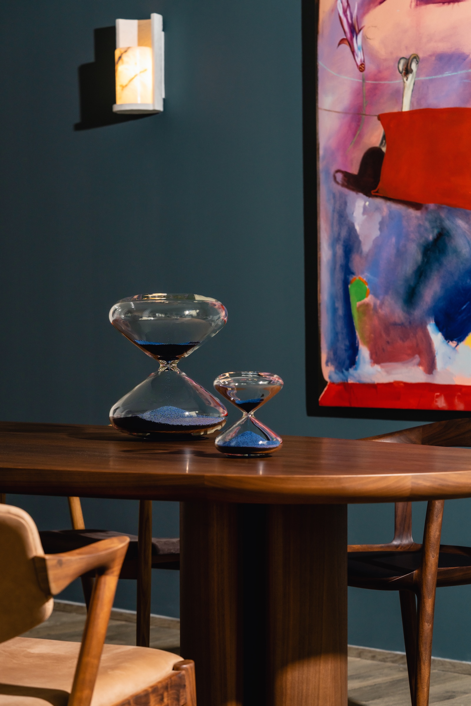 A unique collaboration around the iconic Hourglass by Marc Newson De Bethune and HG Timepiece are proud to announce their unique collaboration around the iconic hourglass by Marc Newson It is a magical moment when two creative minds and art enthusiasts meet around their passion: Marc Newson, one of the most influential designers of his generation, and Denis Flageollet, one of the greatest living master watchmakers. HG Timepiece HG Timepiece – a Swiss company which develops and sells Marc Newson’s timekeeping art objects – had been looking for a technique to blue the nanoballs in his Hourglass for several years. As there are no pure blue metals, it is not possible to plate the nanoballs with this colour, so it was a challenge to overcome. Moreover, the nanoballs’ microscopic size (0.60 mm), as well as perfecting the blue colour coverage and its resistance to wear, were the other major obstacles to achieving this processing technique. De Bethune Each colour corresponds to a different type of energy. At De Bethune, the colour blue carries a broad and deep meaning. Evoking water, sky and space all at once, it is envisaged by Denis Flageollet, Master Watchmaker and Founder of the brand, as a luminous vibration. Thanks to its mastery of the art of thermal oxidation of metals, De Bethune raises the level of complexity once again by bluing millions of nanoballs in polished steel. The blue colour results from the heat released by the chemical reactions of the heated steel. The reaction requires extreme cleanliness of the metals, a precise process only known to watchmakers. This unique preparation will then alloy the bluing of the nanoballs, made of a special steel, in the kiln. The time of oxidation and the temperature must be meticulously controlled in order to obtain the perfect blue. Then, the nanoballs are sorted and only the perfect ones are chosen to fill the hourglass. Collaboration Through HG Timepiece, De Bethune agreed to try to make this blue dream a reality. Denis Flageollet, with his unrivalled expertise in bluing metals such as titanium and steel, experimented in his forge for many weeks with the heat reaction of polished steel nanoballs until he succeeded in bluing them perfectly in the desired tone. He thus developed a method for replicating this same blue on 127 million nanoballs. This was a painstaking process that took several months over the course of a year, and so will not be repeated in the future, given the enormous challenge involved. The incredible task of bluing the nanoballs to perfection, coupled with the ever-increasing complexity of glassblowing, has led HG Timepiece and De Bethune to limit this unprecedented series to 36 Hourglasses: twelve 60-minute hourglasses and twenty-four 10-minute hourglasses. An additional, unique hourglass will be added to the collection, thus completing the collaboration. More information will be announced in due course.